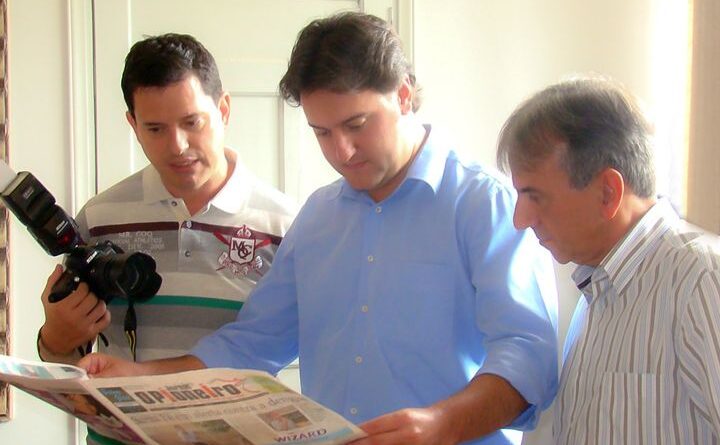 Da esquerda para a direita: Jornalista Marcelo Soares da Silva, atual Governador do estado do Paraná, Ratinho Junior e ex-prefeito de Santa Fé, Edson Palotta (gestão 2013-2016).