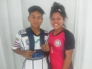 Apesar de serem jovens, Andrelino Nivaia e Michele Panto, dividem as responsabilidades de marido e mulher e se divertem nos jogos escolares na cidade de Jardim Alegre.