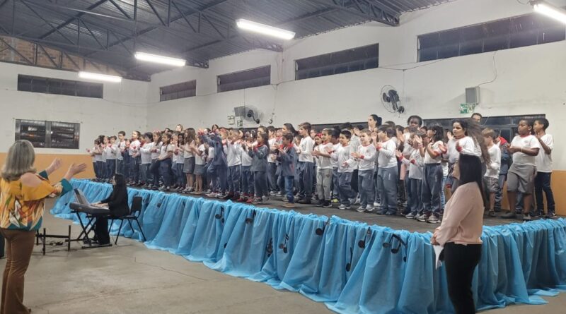 Os alunos da Escola Municipal Duque de Caxias – Ensino Fundamental, participaram, no dia 05/08, da apresentação do Coral Musical Duque. O evento aconteceu no Salão Paroquial e contou com cerca de 190 estudantes.