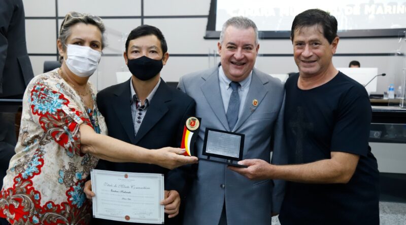 A trajetória de dedicação dos mais de 100 produtores rurais que trabalham na Feira do Produtor de Maringá, foi homenageada na sessão ordinária da Câmara dos Vereadores no dia 07/07. A homenagem foi feita pelo vereador Sidnei Telles (Avante), que entregou o Brasão do Município ao presidente da feira, Eizaburo Kadowaki.