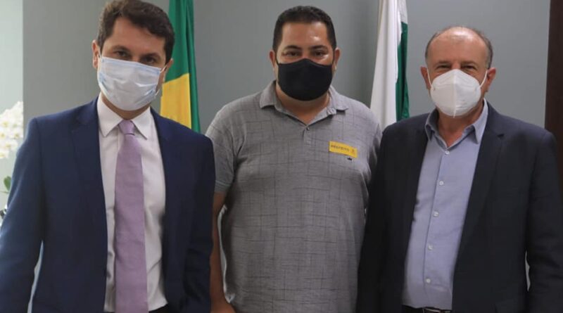 Na foto, da esquerda para a direita: deputado estadual Alexandre Curi, prefeito Clodoaldo e chefe da Casa Civil, João Carlos Ortega.