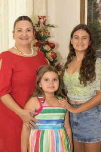 Primeira-dama de Lobato, Fabiola de Oliveira Gazzone Chicaroli e as filhas Alice e Clara.