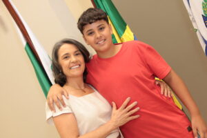 Primeira-dama de Nossa Senhora das Graças, Ana Paula Hernandes do Nascimento Rigieri e o filho José Miguel.