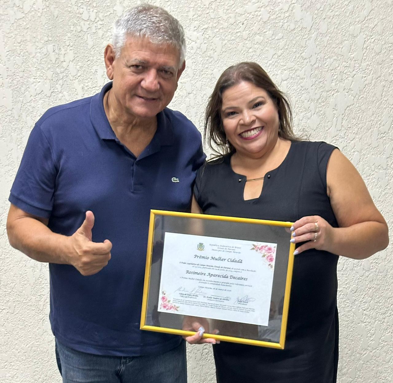 Rosimeire Aparecida Decaires recebe Prêmio Mulher Cidadã em Campo Mourão