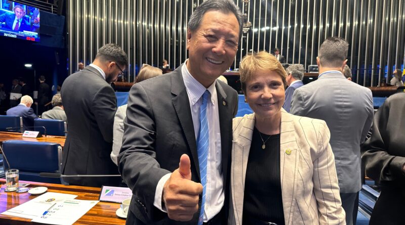 Foto: Deputado federal Luiz Nishimori com a Senadora Tereza Cristina durante a aprovação do Projeto no Plenário do Senado