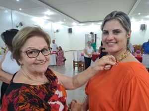 A companheira leão, Célia Berlese Gabella, empossa a farmacêutica Ticiane Pontin