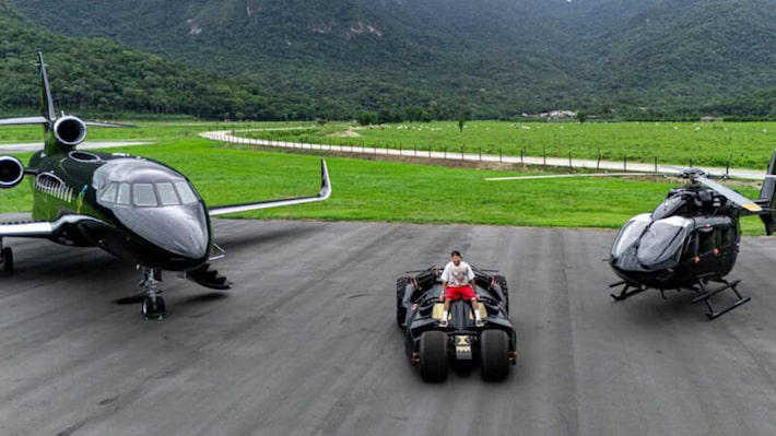 Neymar ostenta com avião, helicóptero e réplica de ‘Batmóvel’ que valem mais de R$ 300 milhões; veja